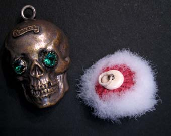 Tiny (1.75" with loop) skull compact, likely from a chatelain, marked "Le Neant" (nothingness, emptiness)...