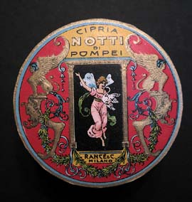Cardboard powder box with decoration inspired by ancient Roman painting...