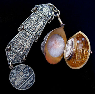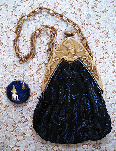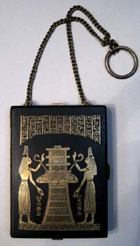 Splendid Egyptian Revival chatelaine with an Evans Egyptian themed vanity