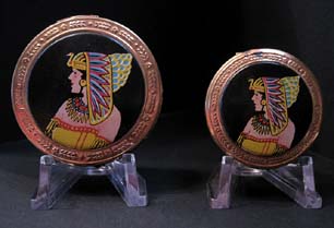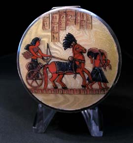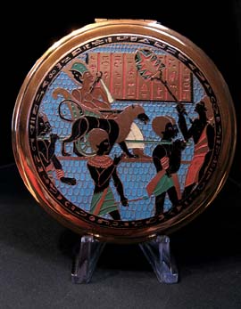 Powder compact marked "VANUDIER Industria Argentina" with Egyptian motif in cloisonné...