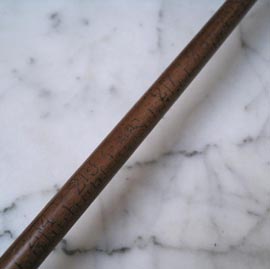 Engraved sterling powder compact (marked "sterling 1907") as head of a 36" yardstick cane...