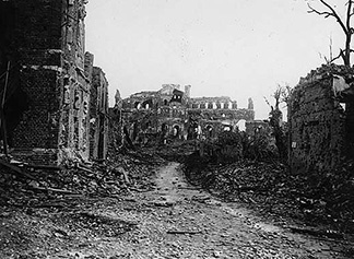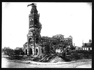 One the left, the cathedral between 1915-1918 (photo by Ernest Brooks). On the right, the cathedral in 1918 after its destruction(photo by John Warwick Brooke)