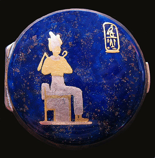 Sterling compact with Egyptian motif with lid and base made from solid pieces of gold flecked lapis lazuli paired with a French Egyptian Revival purse...