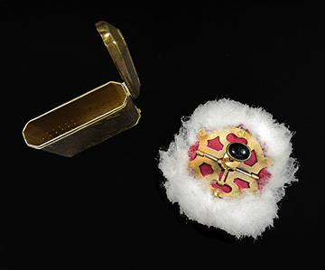 Asprey's flagship retail store is located on New Bond Street in London, United Kingdom. Asprey has supplied crows, coronets and sceptres for royal families around the world and as of 2013 held a Royal Warrant appointment from the Prince of Wales. Asprey was established in England in Mitchum, Surrey in 1781. Founded as a silk printing business by William Asprey, it soon became a luxury emporium. In 1841, William Asprey's elder son Charles went into partnership with a stationer located on London's Bond Street. In 1847 the family broke with this partner and moved into 167 New Bond Street the premises Asprey occupies today. From its central London location Asprey advertised 'articles of exclusive design and high quality, whether for personal adornment or personal accompaniment and to endow with richness and beauty the table and homes of people of refinement and discernment.' An early speciality was dressing cases for which it won a gold medal at the International Exhibition of 1862 . Also in 1862, Asprey was granted a Royal Warrant by Queen Victoria. The Prince of Wales, later to be crowned Edward VII, granted another Royal Warrant. As the business grew, the company acquired manufacturing facilities and hired silversmiths, goldsmith and jewellers . In the twenties, commissions poured in from around the world, from celebrities like American millionaire J. Pierpont Morgan. Asprey cigarette cases became collectable amongst young sophisticates who delighted in its other modern products, including travel clocks, safety razors and automatic pencil sharpeners and, as we have here, novelty items like this lorgnette-compact.