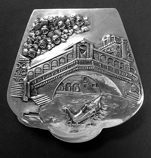 Exceptional Italian 800 compact engraved with a scene of Venice...