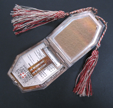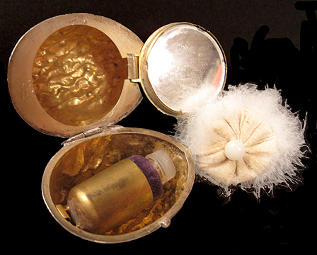 Vienna State Ball Souvenir Dance Compact/Program (1912) by Wilhelm Melzer (marked “Wilhelm Melzer Wien VII”).Since it includes a mirror (for primping?) I consider it to be a compact. It also includes a program of the music played that night at the ball.