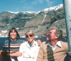 With Tom Nicholson and his daughter, Diana, on a tender heading to the island of Thera