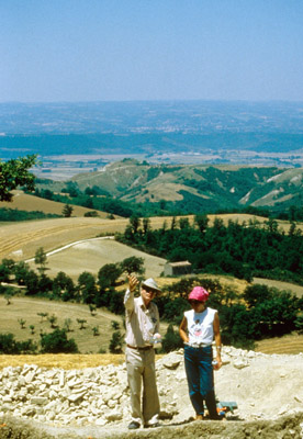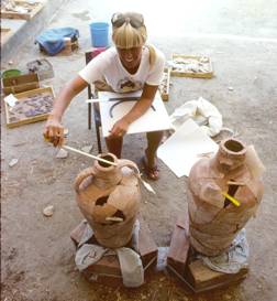 Our Kourion work brought us to the attention of antiquities services all over the world – as we came to the end of our excavations there, other offers came in – the one we accepted was an offer to dig a Roman Villa near Lugnano in Teverina, in the countryside of Umbria in Italy, north of Rome. After several seasons of digging we unearthed a beautiful Roman villa of the first century AD. On the south side overlooking the Tiber a part of the villa (by then in ruins) had been used as a cemetery for infant malaria victims in the 5th century AD. This is one of the largest villas ever discovered in Italy (about the size of our largest shopping mall) and by far the best preserved infant cemetery known in the Roman world. After groundbreaking DNA studies the infants were shown to have died from malaria. This, along with literary evidence, supports David’s rather radical theory that malaria was a root cause of the decline of the late Roman Empire. His theory caused a lot of controversy in the field of archaeology at the time, though it is now accepted as fact. A special about it was featured on the Discovery Channel and another for the BBC series shown on the History Channel, Meet the Ancestors “Malaria and the Fall of Rome” that is still being shown now and then. Once again one of my photos, an infant skeleton found buried in an amphora (storage jar), was seen in papers and magazines all over the world.